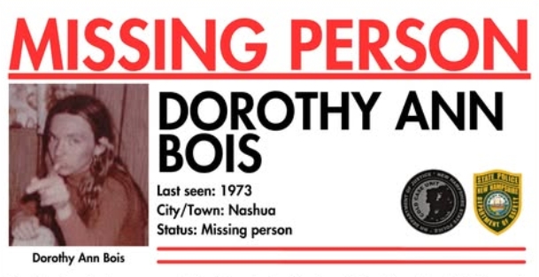 Authorities are again asking the public for help. Anyone with information about the disappearance of Dorothy Ann Bois is urged to contact the New Hampshire Cold Case Unit at coldcaseunit@dos.nh.gov or submit an anonymous tip through the state’s online Cold Case Tip Form.