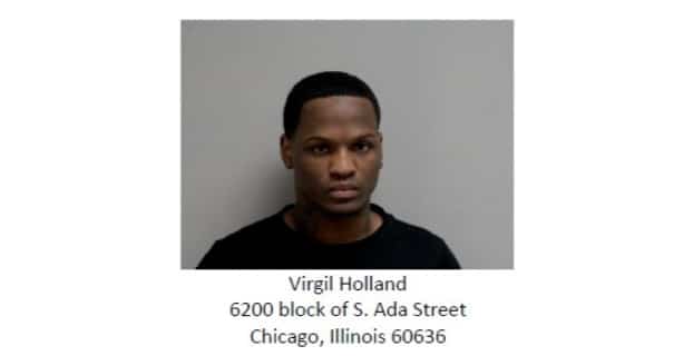 Detectives obtained video footage of the suspects’ vehicle, which was later tracked to a residence in Chicago. There, investigators identified and arrested Virgil Holland, who allegedly matched the description of one of the armed suspects and was reportedly wearing the same pants and boots seen in security video.