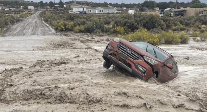 According to the US National Weather Service Albuquerque and San Juan County Fire & Rescue, it takes just six inches of fast-moving water to sweep away an adult — and only 12 inches to carry away a small vehicle.