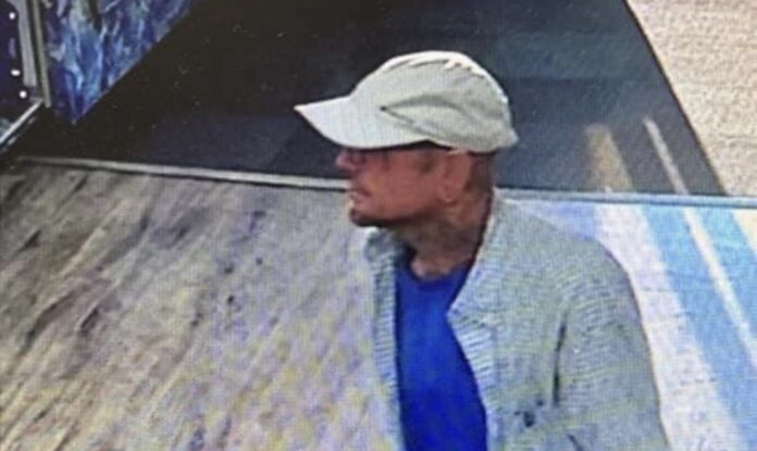 The suspect fled the scene in Wilson’s 2020 blue Jeep Grand Cherokee, bearing New Mexico registration plate CRM142. The suspect is described as a Hispanic male with a goatee and tattoos on his arms, wearing black jeans, a bright blue shirt with a button-up shirt underneath, and a white baseball cap.