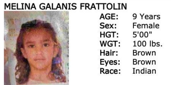 According to the New York State Police, Melina Galanis Frattolin was last seen around 9:40 p.m. on Friday in Lake George, New York. The child is described as an Indian female with brown hair and brown eyes, standing approximately 5 feet tall and weighing around 100 pounds. She was last seen wearing a blue and white striped shirt, shorts, and white Adidas sneakers.