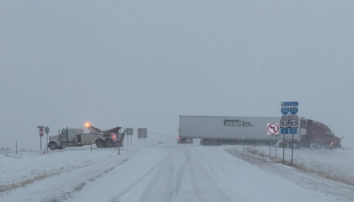 Winter weather conditions have created hazardous travel across much of the region, with low visibility and icy surfaces reported along I-94 between Bismarck and Jamestown. The Highway Patrol is urging motorists to reduce speeds, keep extra distance between vehicles, and avoid unnecessary travel as plow crews continue clearing routes.