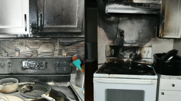 Authorities also advised that if a fire spreads beyond control, residents should exit the home immediately and call 911. Photos released by the fire department show significant smoke and fire damage to the stoves and cabinets in both kitchens.