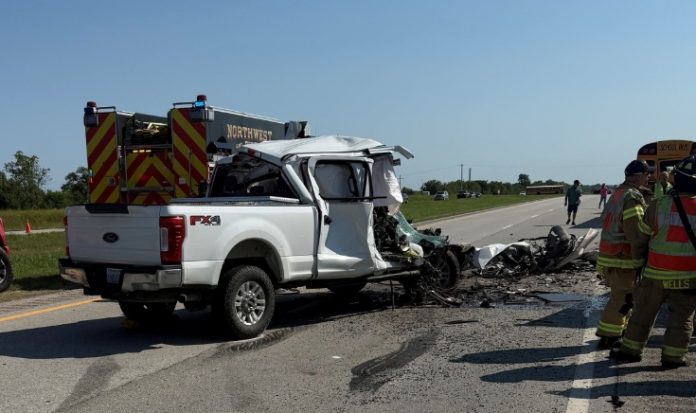 Oologah, OK – A deadly crash involving a school bus and a truck in Rogers County left one man dead and several students with minor injuries on Tuesday.