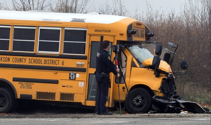 Central Point, OR – Two adults were seriously injured Friday morning after a passenger truck ran a stop sign and struck a Jackson County School District 6 bus in rural Central Point, according to the Jackson County Sheriff’s Office. The crash occurred around 7:11 a.m. at the intersection of Newland Road and Truax Road.