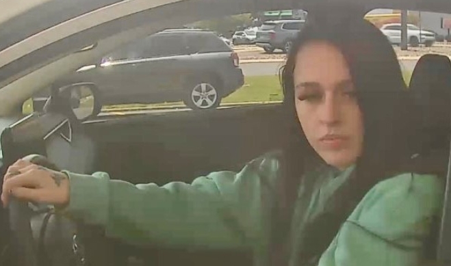 A female suspect, captured in surveillance images, allegedly cashed checks while operating a white vehicle on May 25, the same day as the break-in.