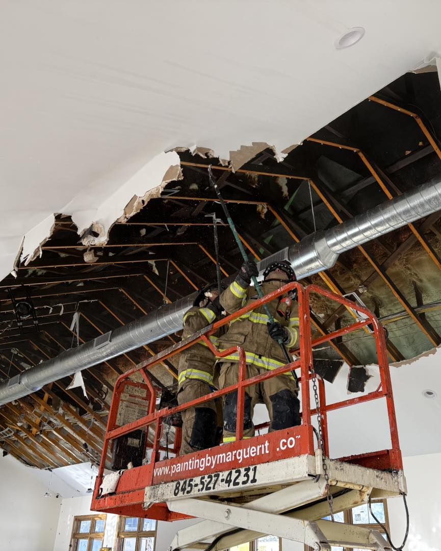 Firefighters were forced to open the ceiling along the full length of the lodge to isolate and extinguish the concealed fire. All units were able to return to service by approximately 11:00 a.m.