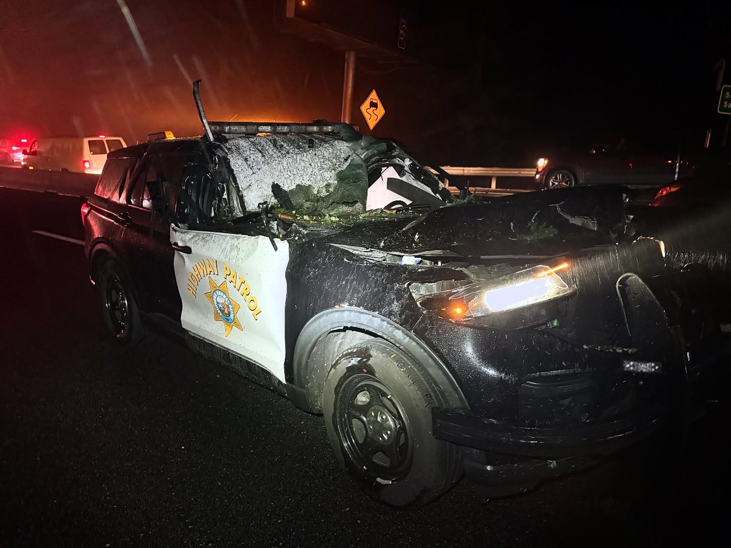 Several good Samaritans stopped to assist, helping remove the fallen tree and allowing everyone to exit safely, according to CHP officials. The officer was transported to a local hospital with minor injuries.