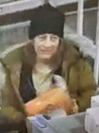 Authorities shared a still image from store surveillance footage that shows the suspect wearing a winter jacket and black hat while handling merchandise near a checkout area. Police say the individual may have information critical to the investigation.
