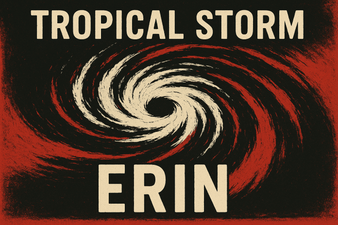 Charleston, S.C. – Tropical Storm Erin is churning west-northwest in the Atlantic and is expected to intensify into a hurricane within the next two days, raising concerns for the Southeast coast. The National Hurricane Center reports sustained winds near 50 mph, with tropical-storm-force wind fields expanding as the system organizes.
