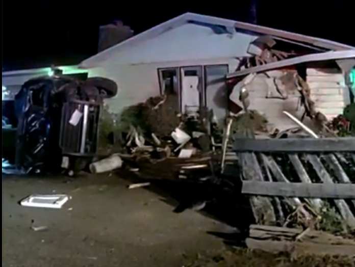 Spokane County, WA – Three adults were hospitalized early Wednesday morning after a violent one-vehicle rollover crash near Airway Heights that left a home heavily damaged and a dog dead, according to the Spokane County Sheriff’s Office.