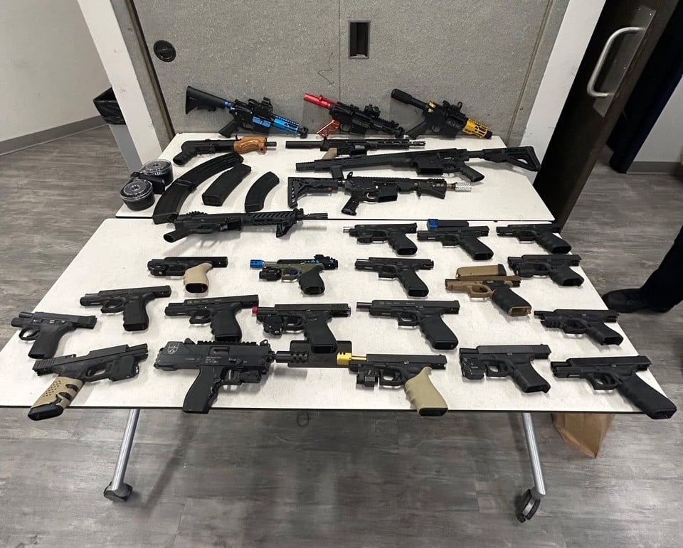 According to the St. Louis Metropolitan Police Department, District 6 officers opened the investigation last month after identifying a convicted felon believed to be in possession of multiple firearms. During the operation, officers seized 27 guns, including three allegedly fitted with conversion devices that made them capable of firing fully automatic. Police also reported that four of the recovered firearms had been previously listed as stolen.