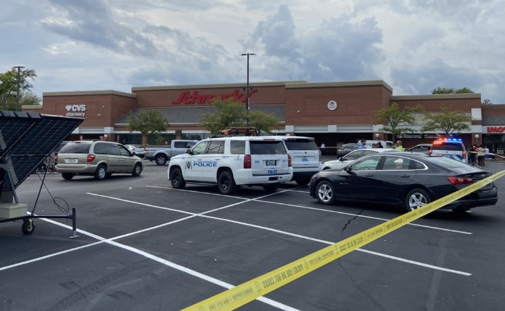 The shopping plaza, which includes several businesses, remained taped off with a heavy police presence following the incident as detectives gathered evidence.