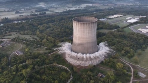 The cooling tower, long a visual landmark in Trousdale County, had stood unused for decades after plans for the Hartsville nuclear facility were canceled in the 1980s. The demolition marks the latest step in TVA’s efforts to repurpose and modernize its unused properties.