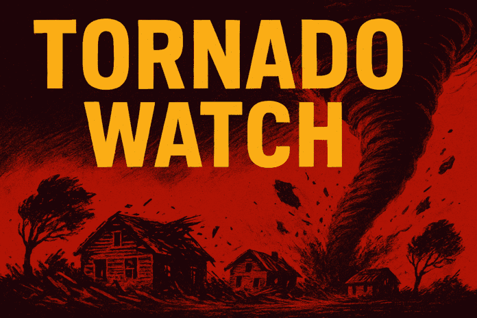 The tornado watch indicates conditions are favorable for the development of tornadoes, and residents should stay alert for updates. Severe weather conditions are expected to develop, and those in affected areas are urged to monitor local news, the National Weather Service, or emergency services for warnings.