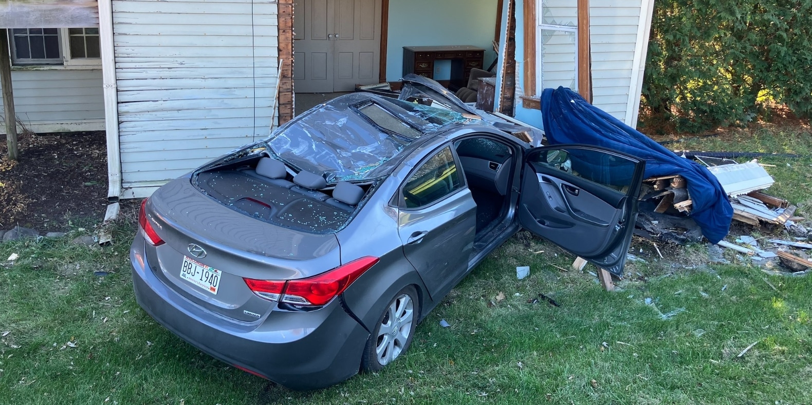 The initial investigation indicates that a verbal dispute broke out between the driver and rear passenger shortly before the vehicle left the roadway. The vehicle entered a ditch, went airborne, and hit the home several feet above ground level. The driver and front-seat passenger sustained minor injuries, while rescuers worked to extricate the rear passenger, who suffered serious injuries.