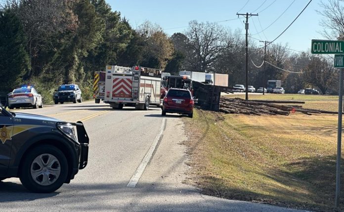 York, SC – A section of York Highway remains closed Monday morning after a logging truck overturned, according to the York County Sheriff’s Office.