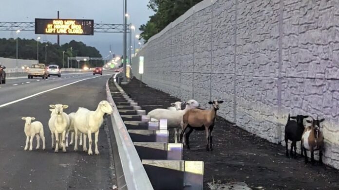 Chesapeake, VA – In a scene reminiscent of a Pixar film, a lively group of farm animals brought unexpected delight and a bit of chaos to I-64 near the High Rise Bridge in Chesapeake. Late Wednesday evening, several goats and sheep from a nearby farm decided to explore beyond their usual confines, wandering onto the highway and creating a spectacle for travelers.