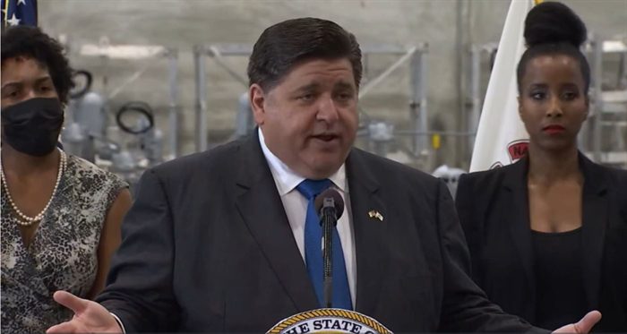 Gov. JB Pritzker speaks at a news conference in Chicago Monday, noting the importance of COVID-19 vaccinations as new variants of the virus spread. (Credit: Illinois.gov)