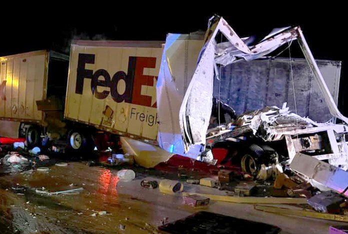 According to Indiana State Police, it happened just after 2 am this morning when the Fedex double tractor trailer semi had stopped when a second semi rear-ended the truck.