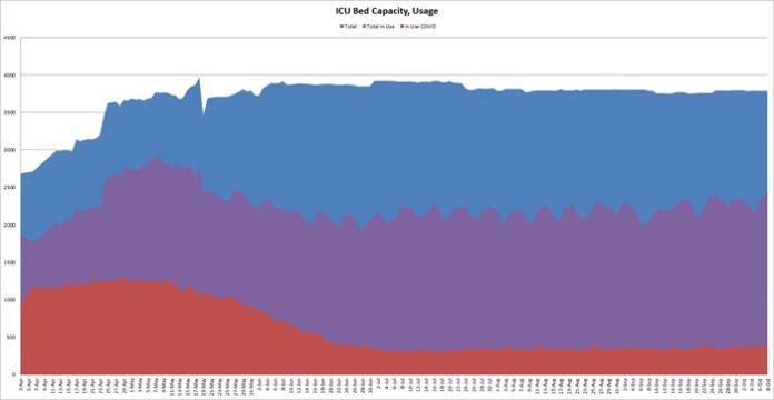 Hospitalizations for the virus continue to push heights not seen since June. As of Thursday night, 1,812 people in Illinois were reported hospitalized with COVID-19 – the first time that metric exceeded 1,800 since June 18. Of those, 395 patients were in intensive care units – a number reached only once since June 29 – and 153 of those patients were on ventilators.