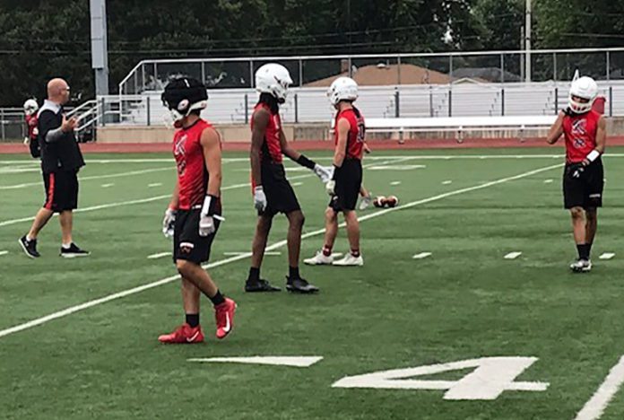 Students practice football drills in 2019 [Photo: BBCHS Athletics]