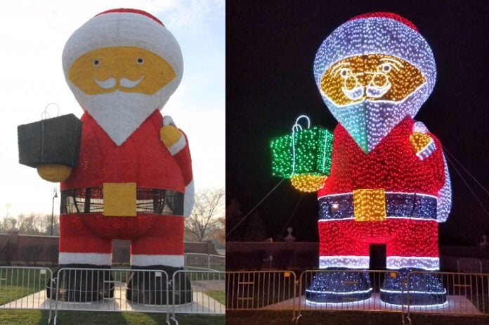 The enchanting winter wonderland at Veterans Pkwy will be adorned with the largest lighted Santa Claus in the nation. This holiday highlight promises visitors an array of new light features amid the season’s joy.