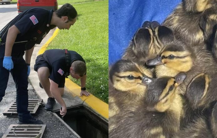 The department’s lighthearted Facebook post shared details of the rescue, featuring images of the ducklings and expressing relief at their safe recovery.