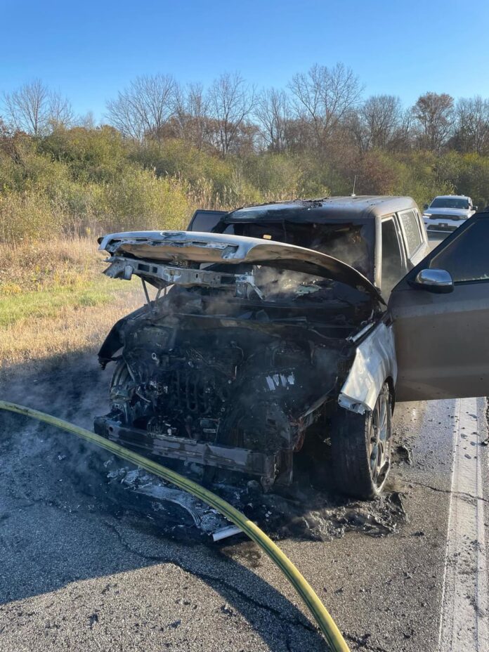 Chesterton, IN – The Chesterton Fire Department (CFD) responded to a vehicle fire on the exit ramp of northbound Ind. 49 from westbound I-94 at 7:47 a.m. on Friday, Nov. 10. Engine 510 was dispatched to the scene, where they found the vehicle’s engine compartment engulfed in flames.