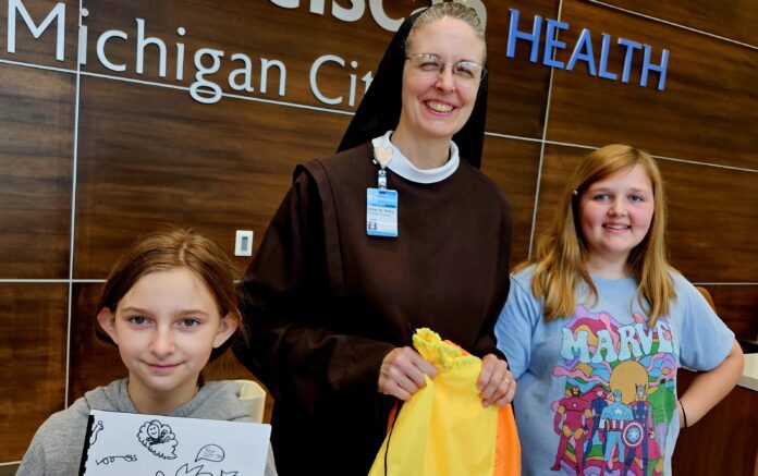 Michigan City, IN – Coolspring Elementary School students in Michigan City recently assembled and donated 54 care packages to Franciscan Health Michigan City patients, each containing a unique coloring book filled with their own artwork.