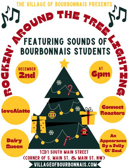 BOURBONNAIS – The Village of Bourbonnais will host the first annual “Rockin’ Around the Tree Lighting” featuring the sounds of the season by Bourbonnais Students Thursday, December 2nd at 6 pm.