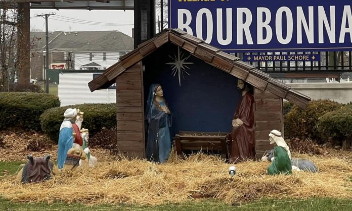 Bourbonnais, IL – Bourbonnais Village officials have reported the theft of a Baby Jesus figurine from their public nativity scene, located at the corner of Route 102 and Convent. The incident occurred over the past weekend, and authorities are appealing for the figurine’s safe return. This type of theft is not unique to Bourbonnais; similar occurrences have been reported in various towns and cities, leading some to discontinue public nativity displays.