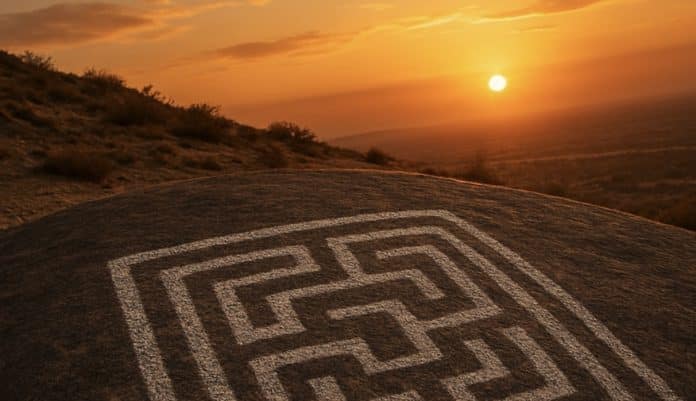Hemet, CA – A massive stone carving hidden in the hills of Hemet has puzzled experts for decades, and new interest in the ancient site is once again drawing visitors. The Maze Stone, a three-foot-square petroglyph carved into a boulder, depicts a maze formed by four interlocking swastikas — a design unlike anything else found in California.