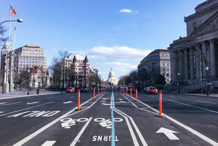 The streets of DC look towards the US Capitol building. [Photo: @christinesmitth via Twenty20]