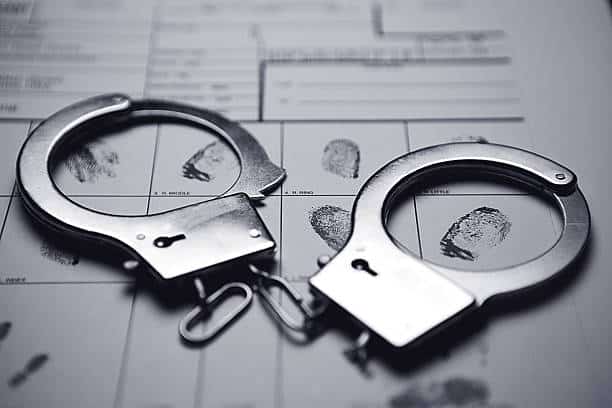 Handcuffs on top of a fingerprint form.