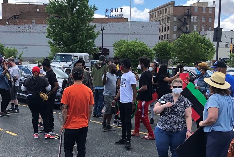 Crowd gatherers at a Black Lives Matter rally and march in downtown Kankakee [Photo: Kiera Allen]
