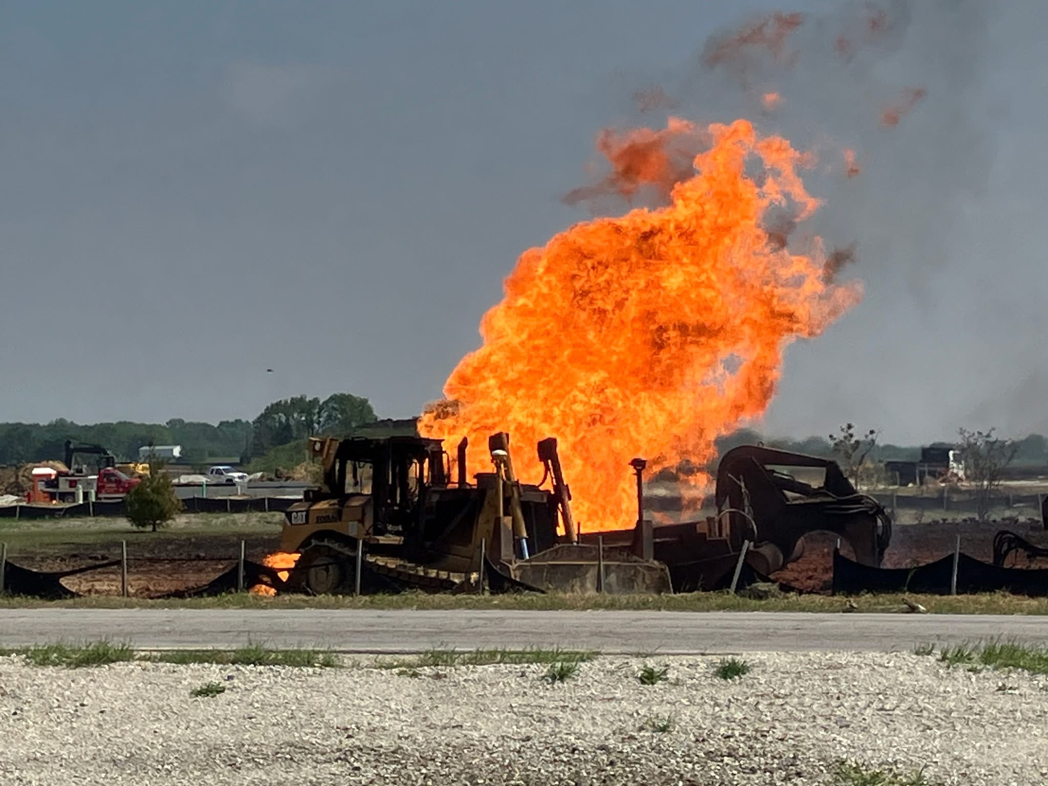 As of 6:30 p.m., officials confirmed the gas flow had been shut off and the fire extinguished. Cleanup and investigation efforts are ongoing, with Wolf Road expected to remain closed for several more hours into the evening.