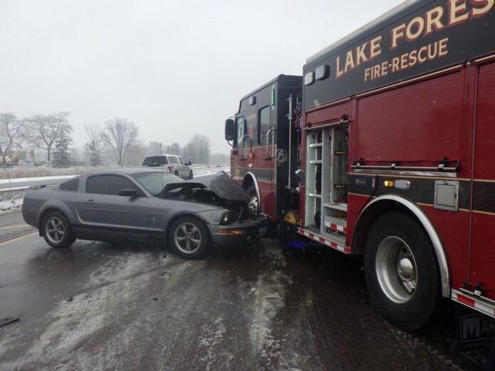 Lake Forest, IL – A Lake Forest Fire Department engine was struck by a passing vehicle this weekend while responding to a motor vehicle accident (MVA).