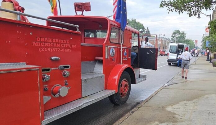 The Firetruck, involved in the Crash Saturday, was participating in a parade just before the wreck. [Photo: Orak Shrine of Michigan City]