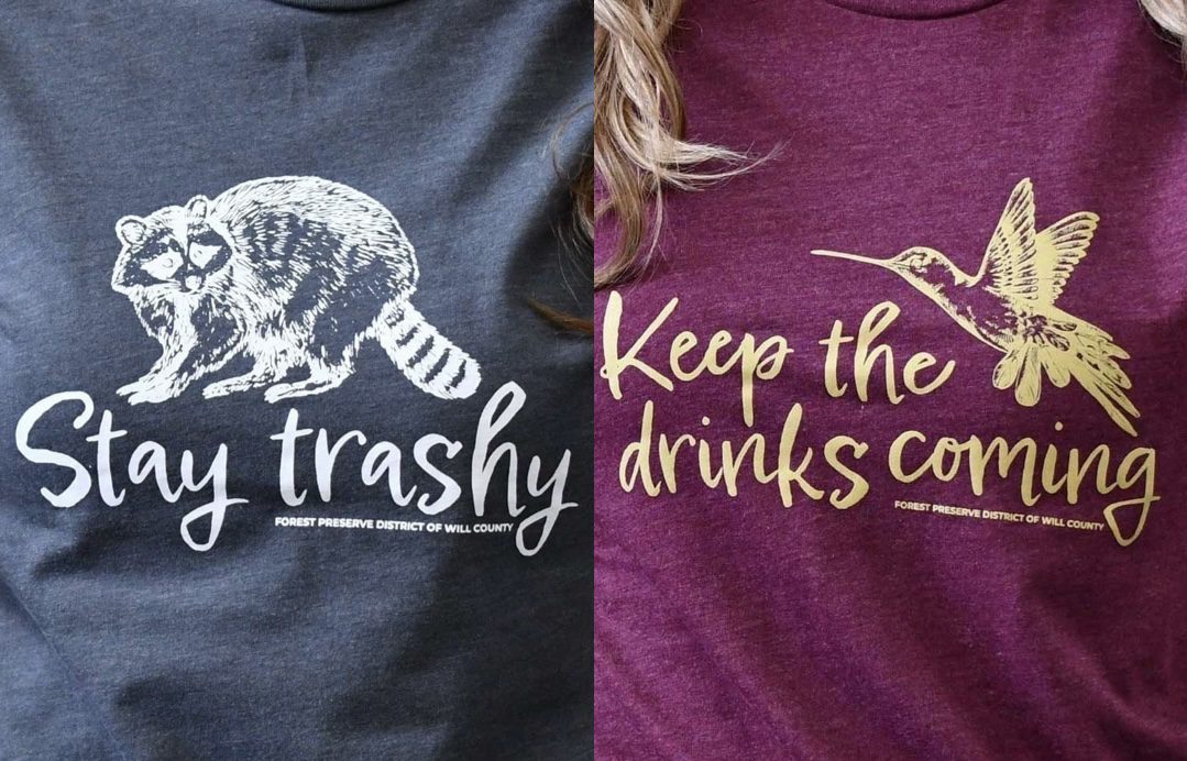 The products feature snappy sayings such as “stay trashy” for raccoons and “keep the drinks coming” for hummingbirds. Proceeds from sales will benefit The Nature Foundation of Will County, which funds various Forest Preserve initiatives.