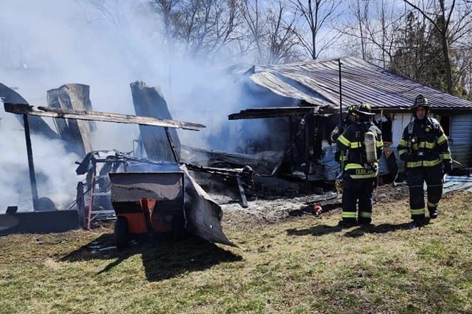 The first company arrived at the scene just five minutes later, finding a 30’×30′ outbuilding fully engulfed in flames.