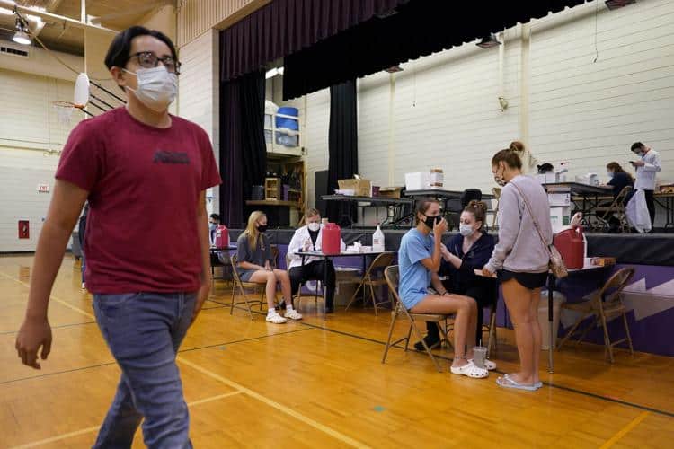 A few of schools reporting outbreaks have been put on probation by the state for ignoring the governor’s mask mandate.