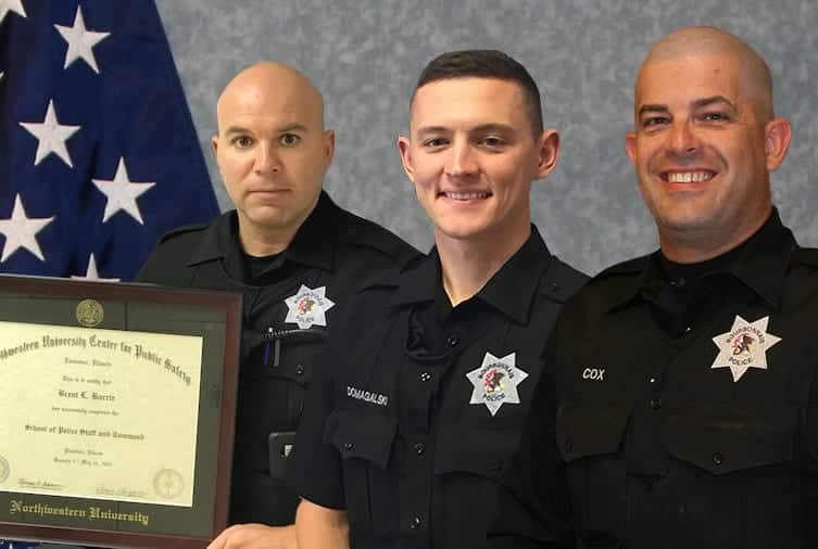 Detective Andy Cox, an 18-year law enforcement veteran and who also serves as a paramedic on the Multi-Agency Emergency Response Team, will be commended for putting his medical training to use when he responded to the scene of an unresponsive individual on June 20, 2019. Detective Cox administered emergency treatment and performed CPR regaining a pulse on the patient, until the Bourbonnais Fire Protection District arrived and assumed control of the scene. Sergeant Brent Barrie, a 21-year law enforcement veteran, recently completed Northwestern University’s School of Police Staff & Command for law enforcement executives on May 10, 2019. Sergeant Barrie completed the intense 400-hour accreditation program with a straight A academic average.