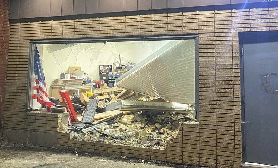 At approximately 2:30 a.m. this morning, Crete Police Officers were dispatched to an alarm at Asgard Arms located at 548 First St. Crete, IL 60417. Upon arrival officers observed a vehicle crashed into the side of the building. Video surveillance was obtained of the incident. Upon further investigation it was revealed that (5) suspects had purposely used the vehicle to “ram” the wall of the building to gain access.