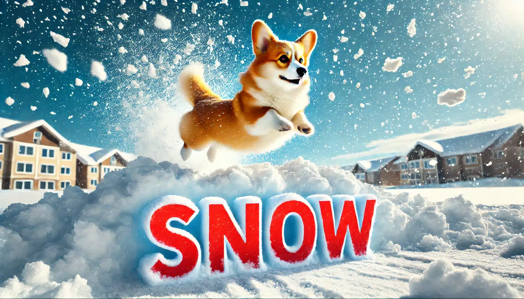 Snow corgi playing