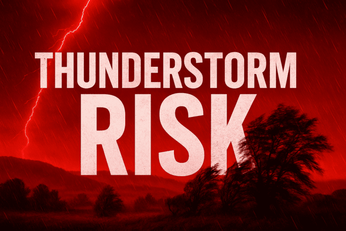 Raleigh, N.C. – Damaging winds and large hail could hit much of eastern North Carolina beginning as early as 2 p.m. Thursday, as two rounds of severe thunderstorms sweep through the region into early Friday morning.