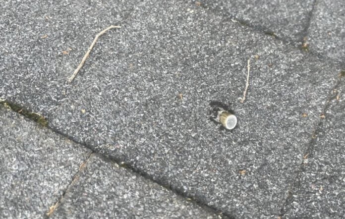 The Park Forest Police Department shared a photo of a bullet lodged in a resident’s roof, discovered during routine repairs. The incident serves as a chilling reminder that what goes up must come down, and bullets fired into the air can pose a serious threat to both life and property.