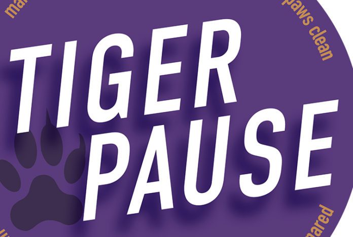 “Tiger Pause signage will be posted around campus to remind students, faculty, staff, and visitors of the importance of simple actions including wearing a face covering, keeping the “paws” clean, and maintaining a social distance of 6-feet whenever possible.” The University said in a statement.