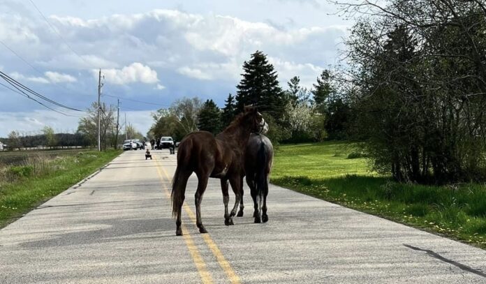 Kenosha County, WI – An unusual chase unfolded on a busy highway in the Village of Somers on Tuesday afternoon, where Kenosha County Sheriff’s Department deputies found themselves corralling two free-roaming horses.